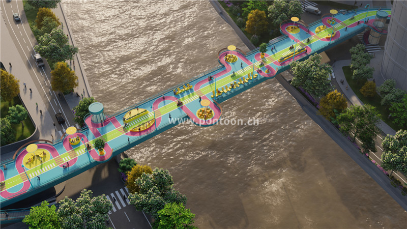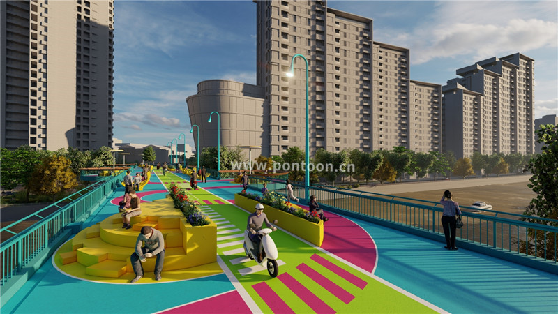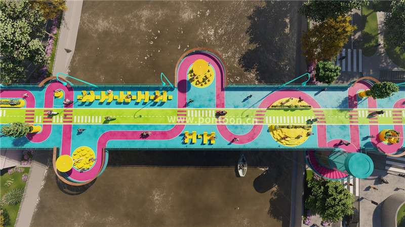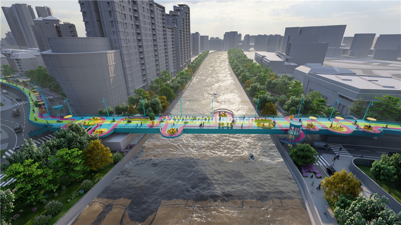 該設(shè)計(jì)暗示了引人注目的高架城市地標(biāo),還將按顏色隔離環(huán)流, 創(chuàng)建了可以通過橋梁的不同節(jié)奏和步調(diào)的層次結(jié)構(gòu) 。該項(xiàng)目引入了一條用于自行車和摩托車的電動(dòng)石灰彩色直行車道,以及一條粘性洋紅色的蜿蜒小路,以降低行人的通行速度。營造一個(gè)好玩的循環(huán),鼓勵(lì)行人減速,享受旅途并欣賞美景。