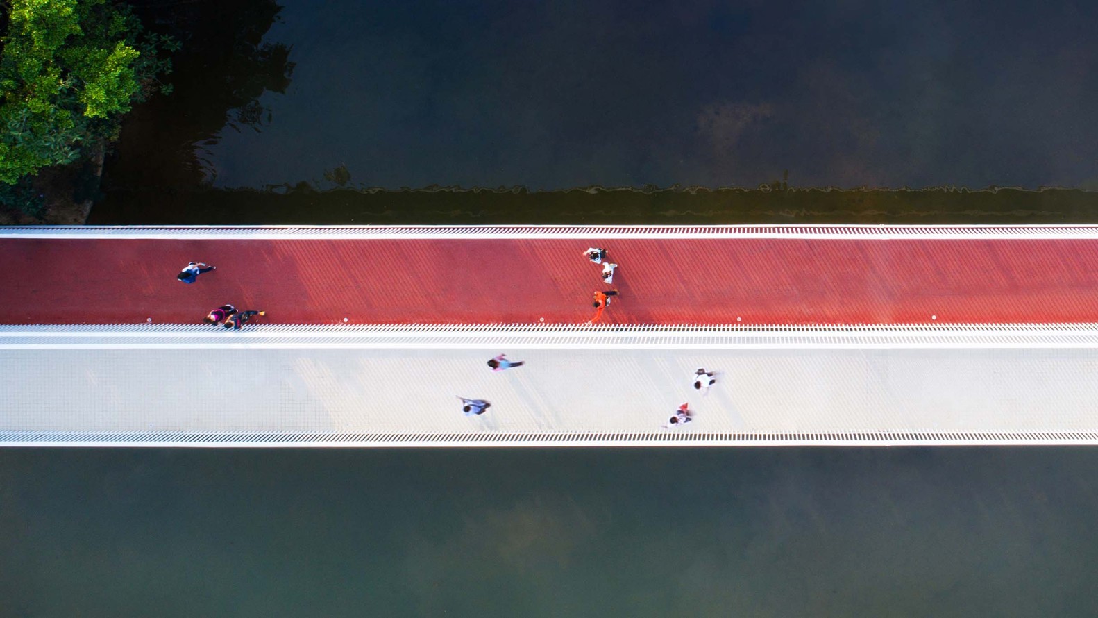 八米寬的橋被分成兩個四米長的通道。一個是筆直的物體,可以提供平坦度。這是一個無障礙通道,可用于散步,慢跑,騎自行車,輪椅和小型手推車。另一條是一條起伏的休閑步道,從地面一直延伸到湖水,一直延伸到可以俯瞰車道的更高水平。流線型設計使人們可以放慢速度,換句話說,如果他們愿意,可以讓人們選擇放慢速度。
