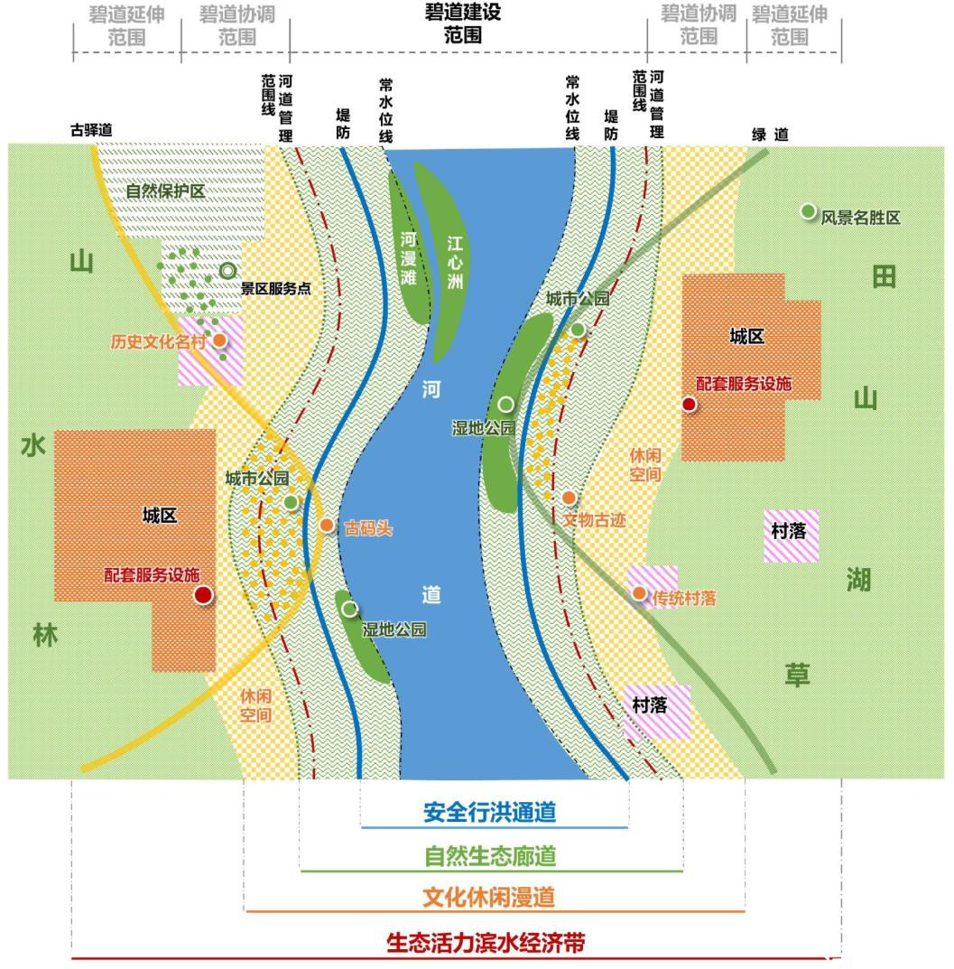 城鎮型碧道:依托流經中小城市城區及鎮區水系建設,針對中小城市及城鎮地區人口相對稠密特點,在滿足居民康體休閑文化等需求的同時,強調生態、經濟功能,凸顯地域特色。