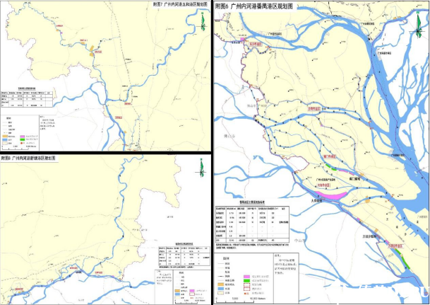 《廣州內河港總體規(guī)劃》將廣州內河港口劃分為番禺港區(qū)、五和港區(qū)和新塘港區(qū)等3大港區(qū),其中番禺港區(qū)劃分為東沙、沙灣、蕉門、大崗和萬頃沙5個作業(yè)區(qū);五和港區(qū)分為赤坭、花都港、神山、石井和流溪河5個作業(yè)區(qū);新塘港區(qū)分為新塘、仙村、石灘和荔城4個作業(yè)區(qū); 《廣州港總體規(guī)劃》明確廣州港包括內港口港區(qū)、黃埔港區(qū)、新沙港區(qū)、南沙港區(qū)和珠江口水域,內港區(qū)今后的發(fā)展除保留那些具有一定地理優(yōu)勢及特點的港口作業(yè)區(qū)外,將把貨運功能逐步外遷、結合城市發(fā)展實施綜合開發(fā)。外港區(qū)是廣州港以集裝箱和石油、煤 炭、鐵礦石等能源、原材料為主的綜合性港區(qū),是廣州港發(fā)展的重點。廣州內河港總體規(guī) 劃、廣州港總體規(guī)劃為碧道路徑選擇和建設提供了基礎條件,碧道建設應避繞或以合理方式穿越碼頭設施和港口規(guī)劃岸線,并在后期實施方案階段征求港務局和相關港口意見。