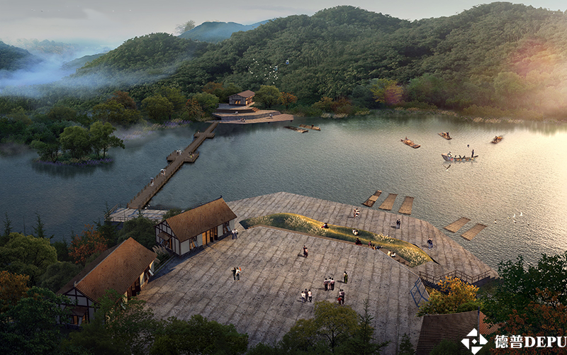 在山巒秀色的定波湖上修建一座浮橋,只為保留最壯闊、最原始的360°無死角湖面景觀。