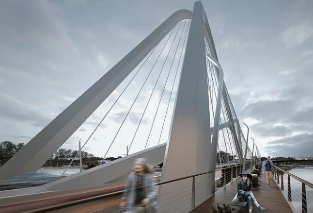 從遠處看,它是景觀本身的一部分,漂浮在河流上。這座橋的輪廓旨在使城市動態天際線得以延伸,使城市景觀更加極致。