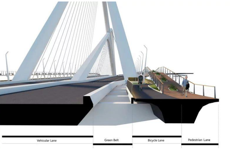 這座橋是為駕駛者、騎行者和步行者設計的。