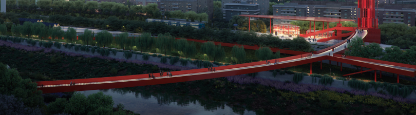紅色大鐵環將山谷兩岸連接在一起,并發揮著復合的多功能效用。