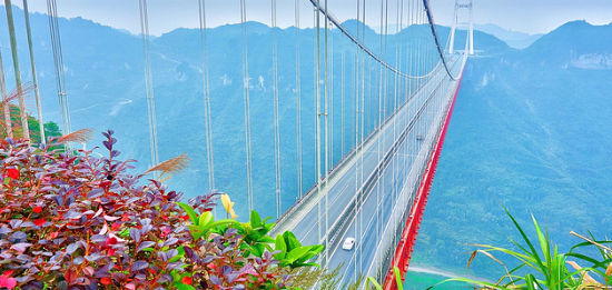 矮寨大橋矮寨大橋(Aizhai Bridge)是中國湖南省湘西土家族苗族自治州境內的大橋, 創了四個世界第一: 一是大橋主跨1176米,跨峽谷懸索橋,創世界第一。 二是首次采用塔、梁完全分離的結構設計方案,創世界第一。 三是首次采用軌索滑移法”架設鋼桁梁,創世界第一。 四是首次采用巖錨吊索結構,并用碳纖維作為預應力筋材,創世界第一 標簽: